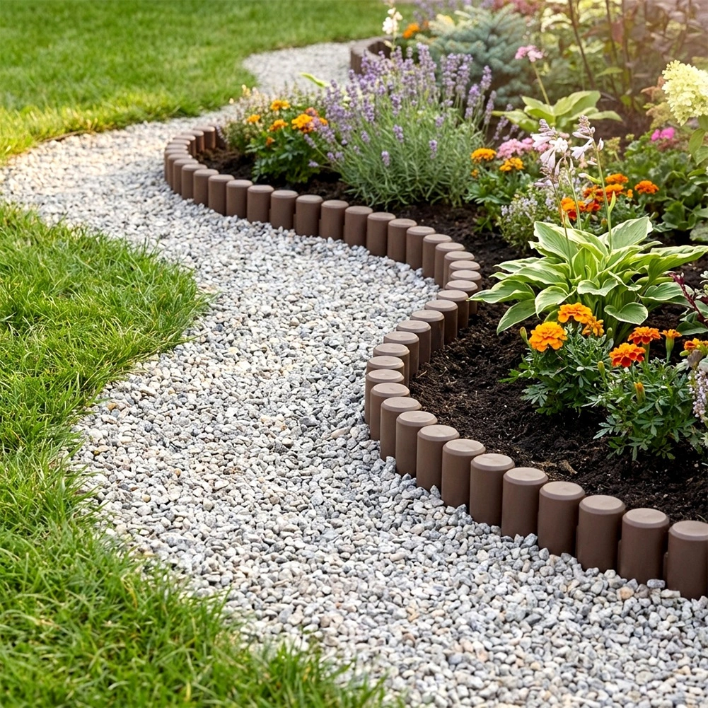 Alakítson ki tiszta és rendezett szegélyeket virág- és zöldségágyások körül. A moduláris rendszerrel egyeneseket és íveket is formálhat, így könnyen az adott helyhez igazíthatja a hosszát és a vonalvezetést. A barna árnyalat természetesen illeszkedik a talajhoz és a kerti növényzethez.