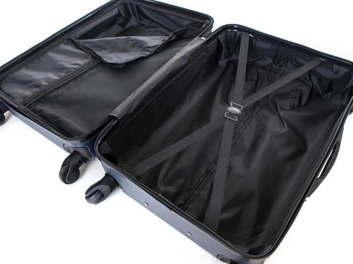 A belső tér átgondolt a rendezett pakoláshoz: az egyik oldalt cipzáras textil elválasztó rekesz zsebbel, a másikat erős kereszthevederek rögzítik. A cipzár húzófejei összekapcsolhatók az integrált számzárral a nagyobb utazási biztonság érdekében.
