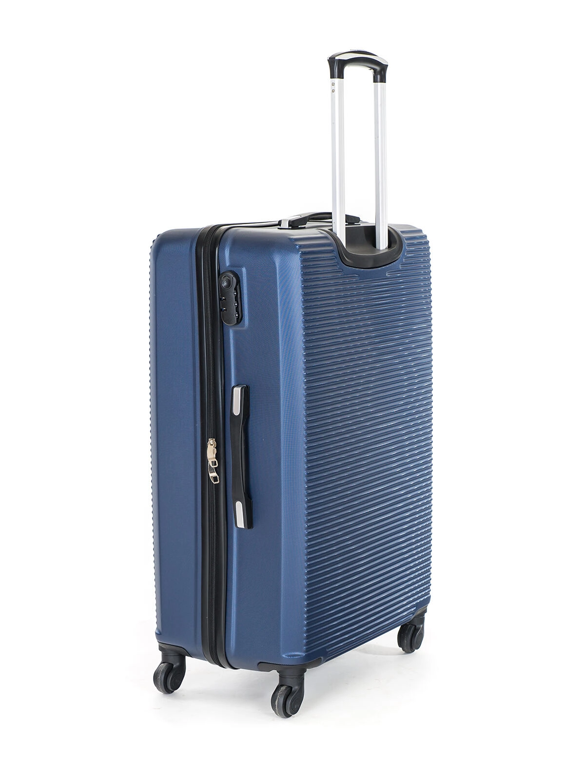 Ez a nagy méretű (L) keményhéjú bőrönd elegáns kék színben készült strapabíró ABS műanyagból, amely kiválóan védi a tartalmat az ütődésekkel és kopással szemben. A négy 360°-os keréknek és a rögzíthető, kihúzható teleszkópos fogantyúnak köszönhetően a bőrönddel könnyedén és simán közlekedhet repülőtéren és városban egyaránt.