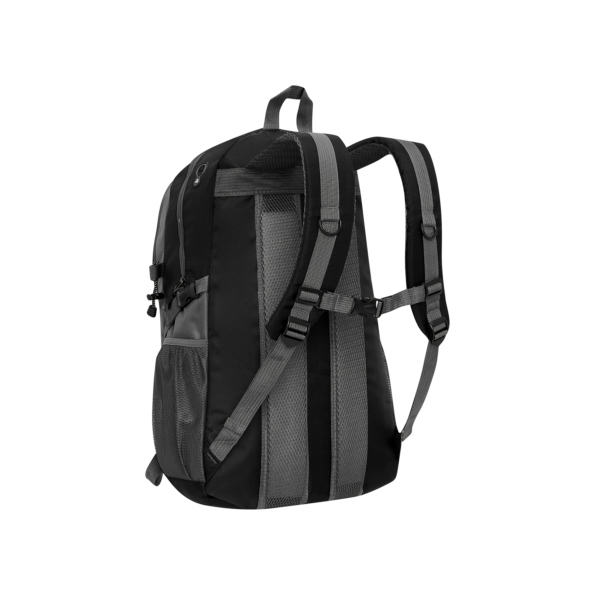Az állítható mellpánt, a párnázott vállhevederek és a kompressziós pántok egyenletesen osztják el a terhet, és a hátizsákot szilárdan a testhez rögzítik.