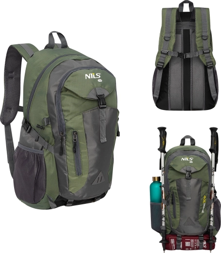 A kompressziós és alsó pántok, a túrabot rögzítők és az állítható mellkaspánt szilárdan és kiegyensúlyozottan tartják a terhet.