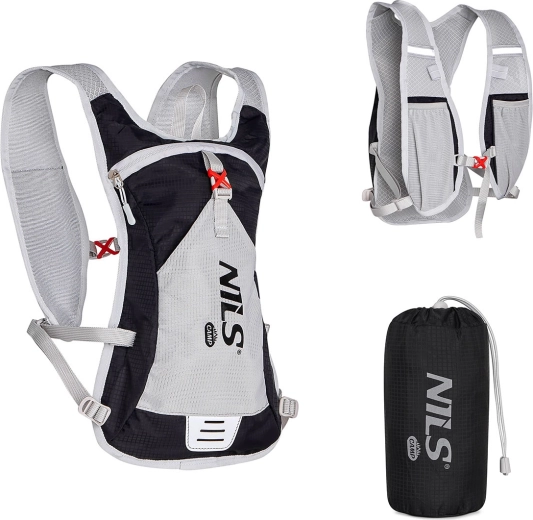 A csomag része egy levehető tok is, amelybe az egész hátizsák gyorsan elpakolható – ideális tartalék hátizsáknak bőröndbe vagy táskába. A vállpántokon rugalmas zsebek, gumihurok a hidratációs csőnek és átlátszó kis zseb található kártyának vagy rajtszámnak. Az állítható mellpánt stabilitást ad futás és kerékpározás közben.