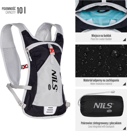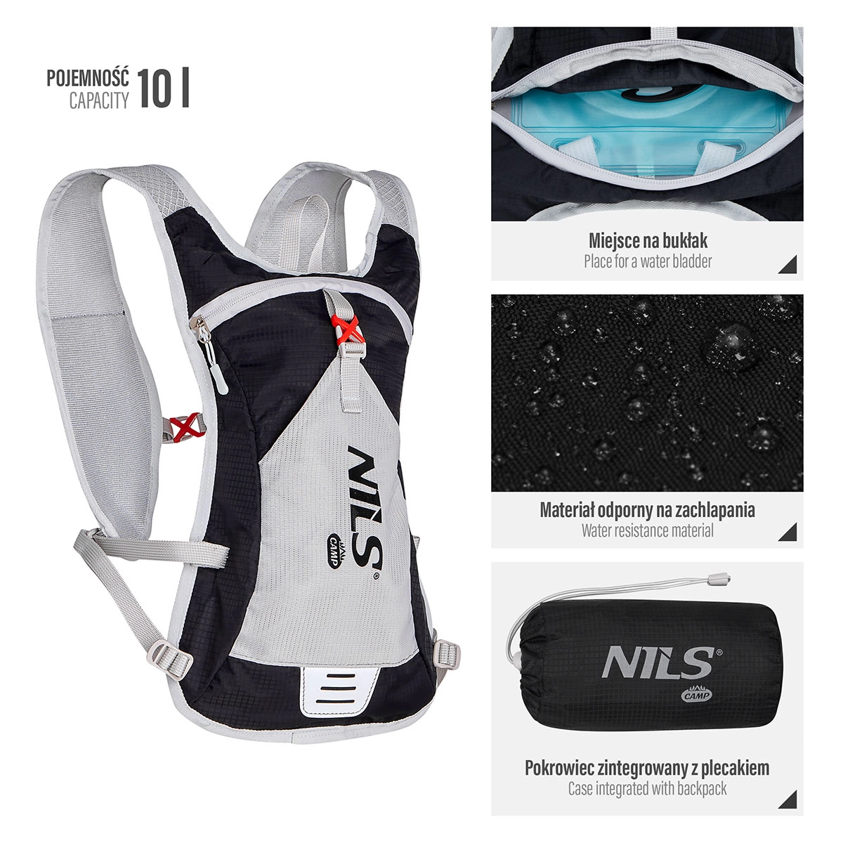 A NILS Camp Tripper kényelmes mozgásra és szabad kezekre készült sport közben. A hátpanel és a vállpántok légáteresztő hálóból és habból állnak a jobb szellőzésért, így kevésbé izzadsz. A főrekesz elválasztóval és rögzítésekkel rendelkezik a hidratációs tasakhoz, a csövet könnyen kivezetheted a jobb vagy bal oldalra. Az elülső hálós zseb csattal és fényvisszaverő panellel segíti a jobb láthatóságot és a felszerelés rögzítését.