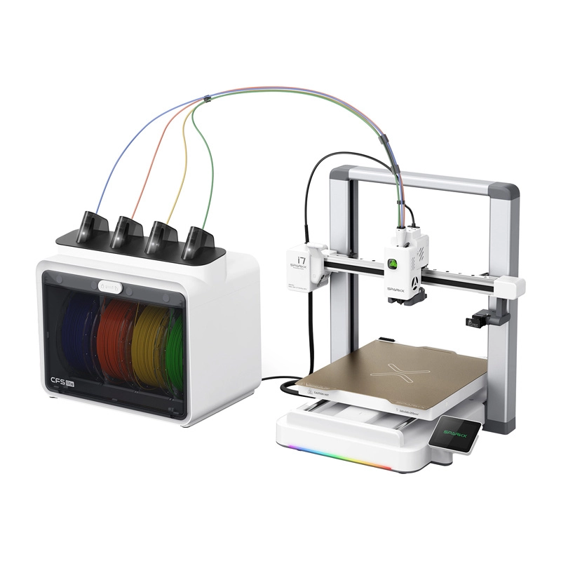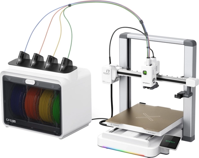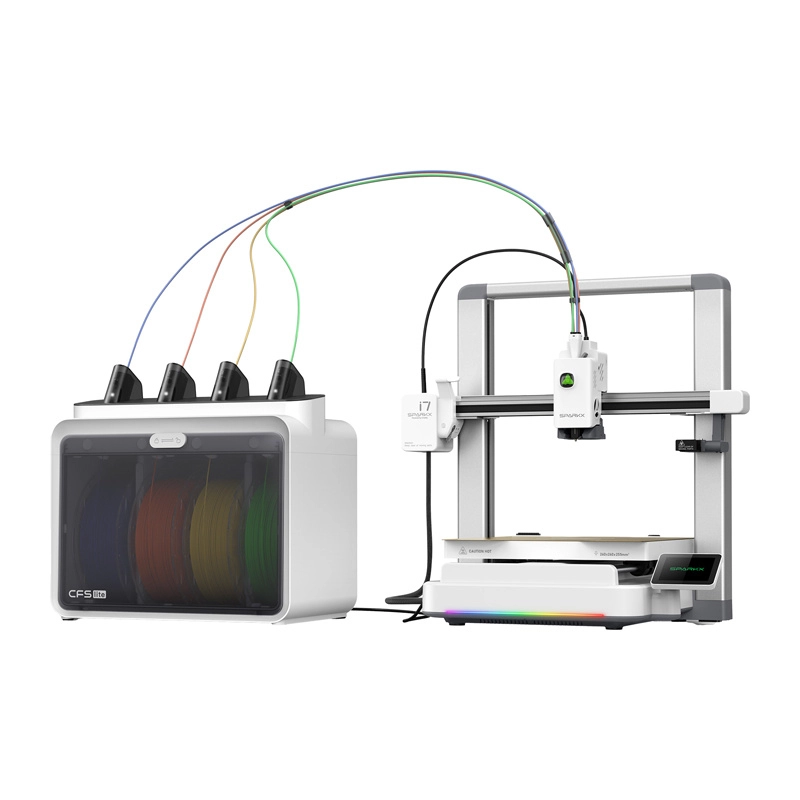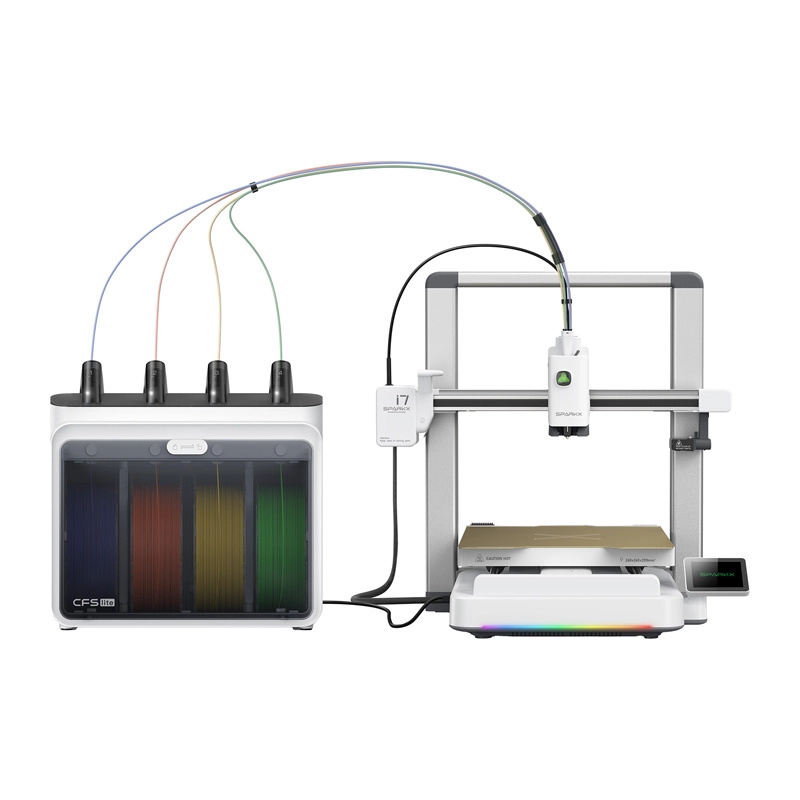 A CFS Lite modul lehetővé teszi négy szín vagy anyag kombinálását egyetlen modellben. Az RFID automatikusan felismeri a filamentet, az auto‑refill funkció pedig zökkenőmentesen átvált a következő tekercsre a hosszú nyomatoknál.