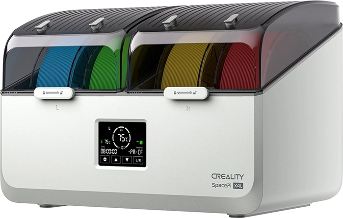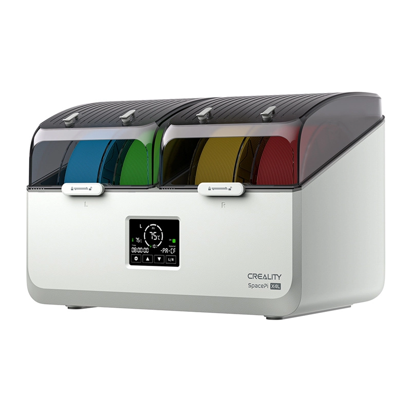 A Creality SpacePi X4L nagy teljesítményű filament szárító otthoni és professzionális 3D nyomtatáshoz. A fejlett hőmérséklet- és páratartalom-érzékelők stabil körülményeket tartanak a kamrában, minimálisra csökkentve a buborékosodás, a szálhúzás vagy a gyengébb rétegtapadás problémáit. Az intuitív LCD érintőpanel antisztatikus réteggel gyors beállítást és valós idejű felügyeletet tesz lehetővé, beleértve az automatikus módot is.