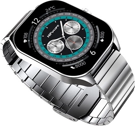 A HiFuture FutureFit Apex a rozsdamentes acél modern dizájnját ötvözi az éles, 2,04"-es AMOLED kijelzővel a tökéletes olvashatóságért üzeneteknél és sportadatoknál. A fémház és az acél szemes szíj reprezentatív megjelenést ad, amely üzleti és szabadidős környezetben egyaránt megállja a helyét.