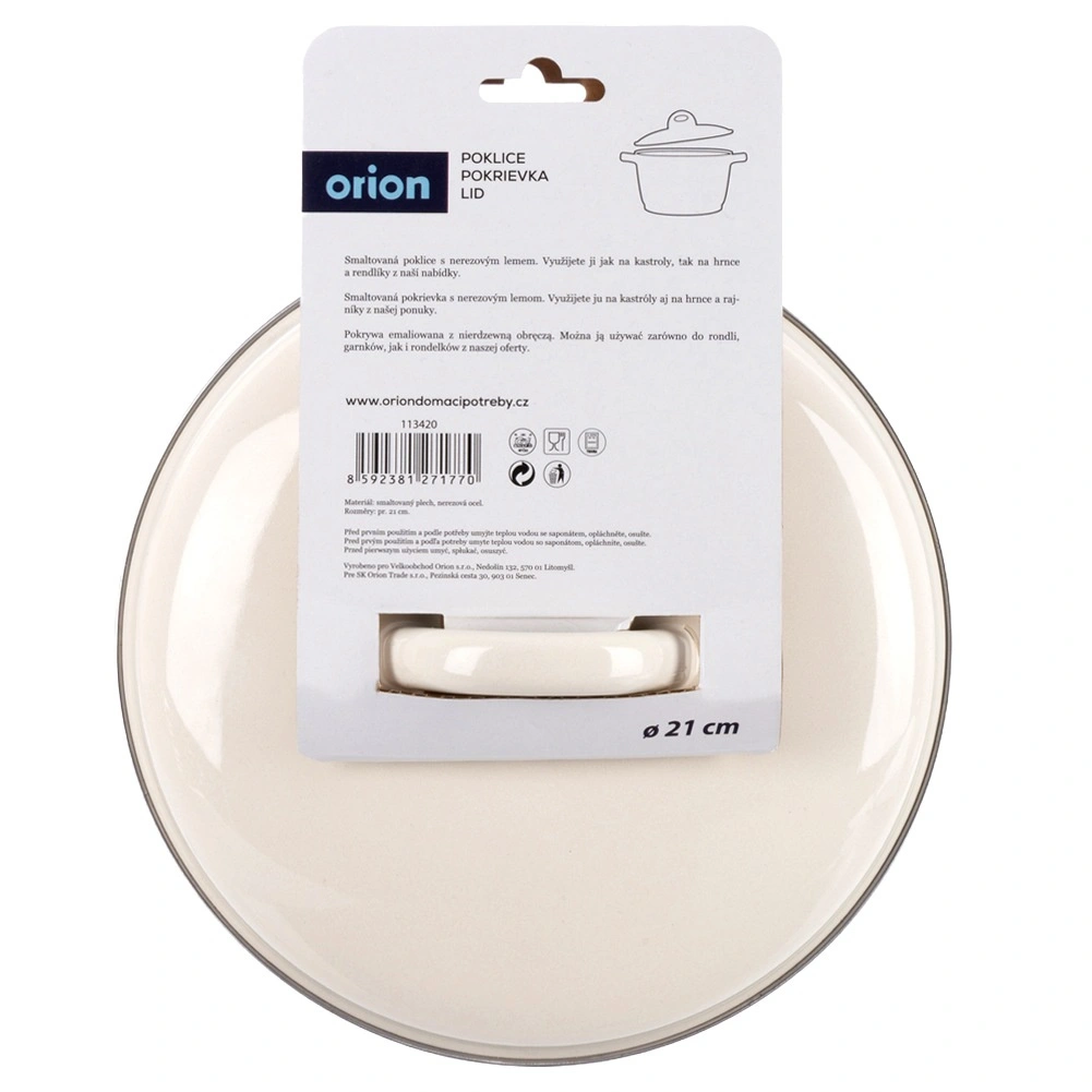 Ez a praktikus fedő minőségi zománcozott felületű acélból ideális kiegészítő fedél nélküli edényekhez. Univerzális méretének köszönhetően megbízhatóan illeszkedik a legtöbb 21 cm átmérőjű lábashoz, serpenyőhöz és nyeles lábashoz. A zománc higiénikus, könnyen tisztítható és allergiások számára is biztonságos.