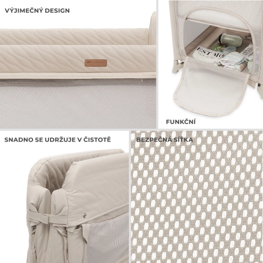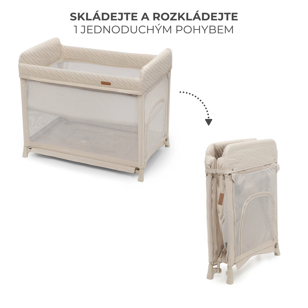 Az okos összecsukó mechanizmusnak köszönhetően a kiságy egyetlen egyszerű mozdulattal nyitható vagy csukható. Ideális gyakori áthelyezéshez, kirándulásokhoz és otthoni tároláshoz.