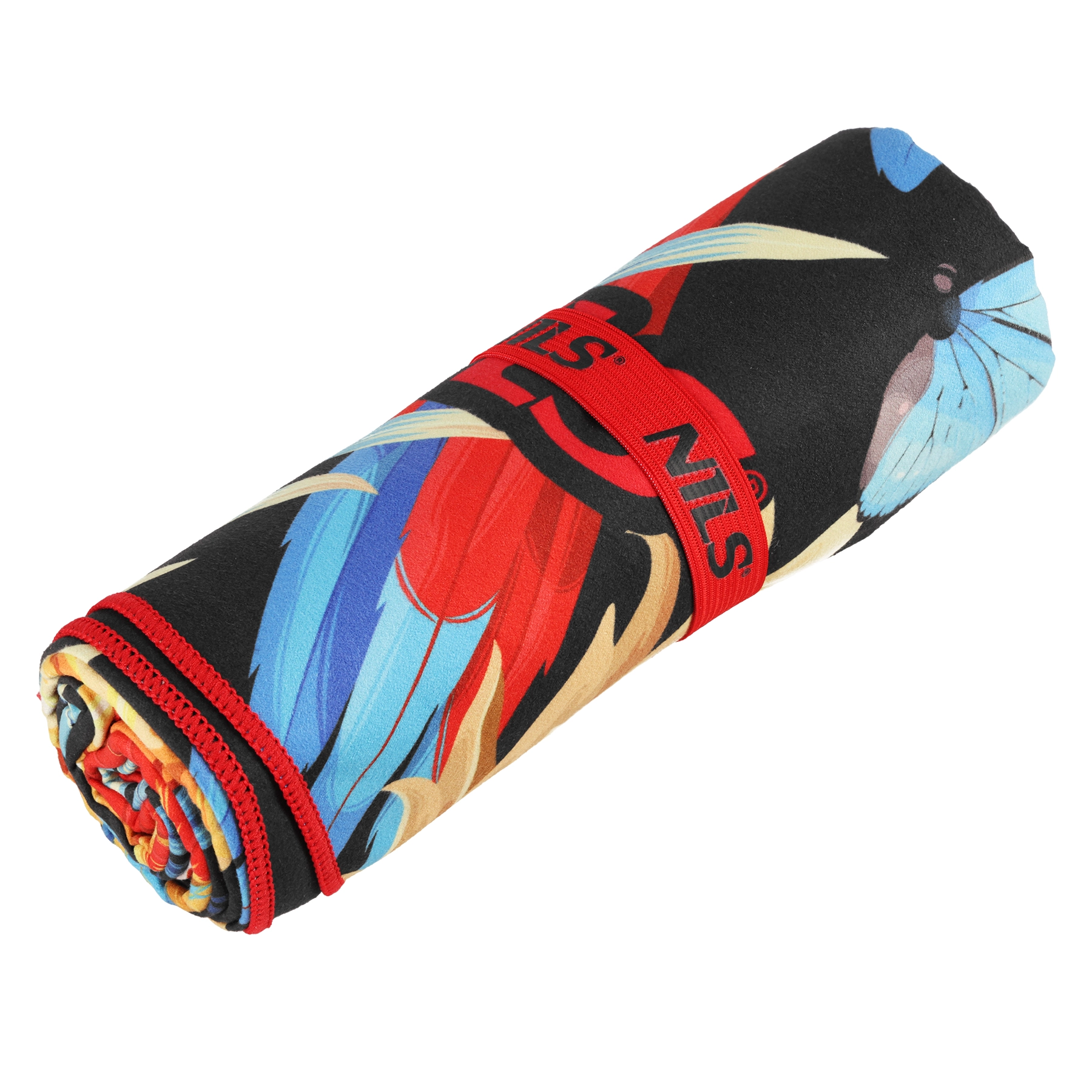 Összehajtás után a törölközőt a NILS elasztikus gumipánttal rögzítheti, így minimális helyet foglal a hátizsákban vagy táskában, és rendezetten marad.