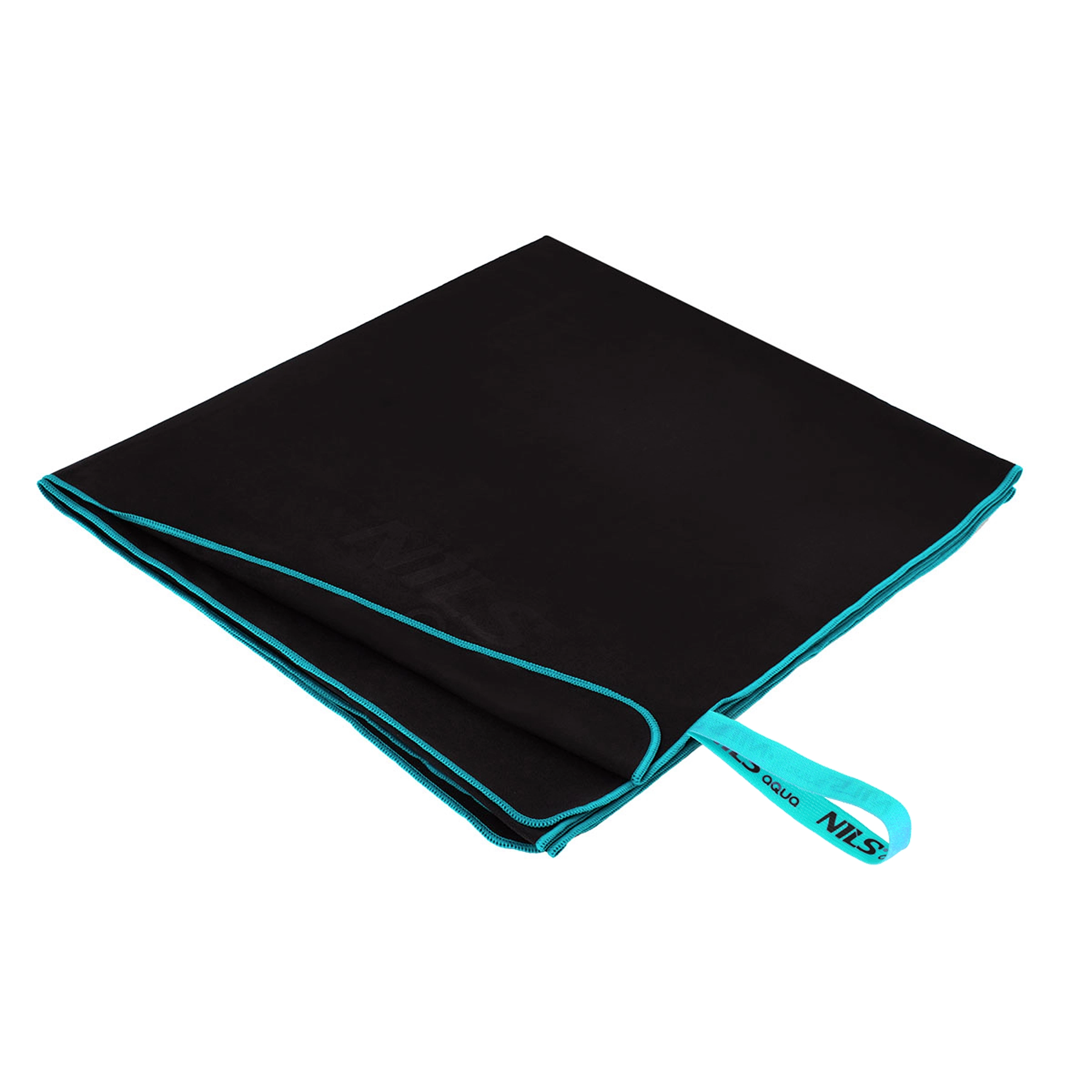 Ultrakönnyű és gyorsan száradó mikroszálas törölköző NILS aqua kiváló nedvszívó képességgel, kompakt, gumipántos csomagolással és tartós szegéssel a foszlás ellen. Ideális nyaraláshoz, vízpartra, fitneszhez, kempingbe és otthonra is – könnyen mosható, és néhány perc alatt újra használatra kész.