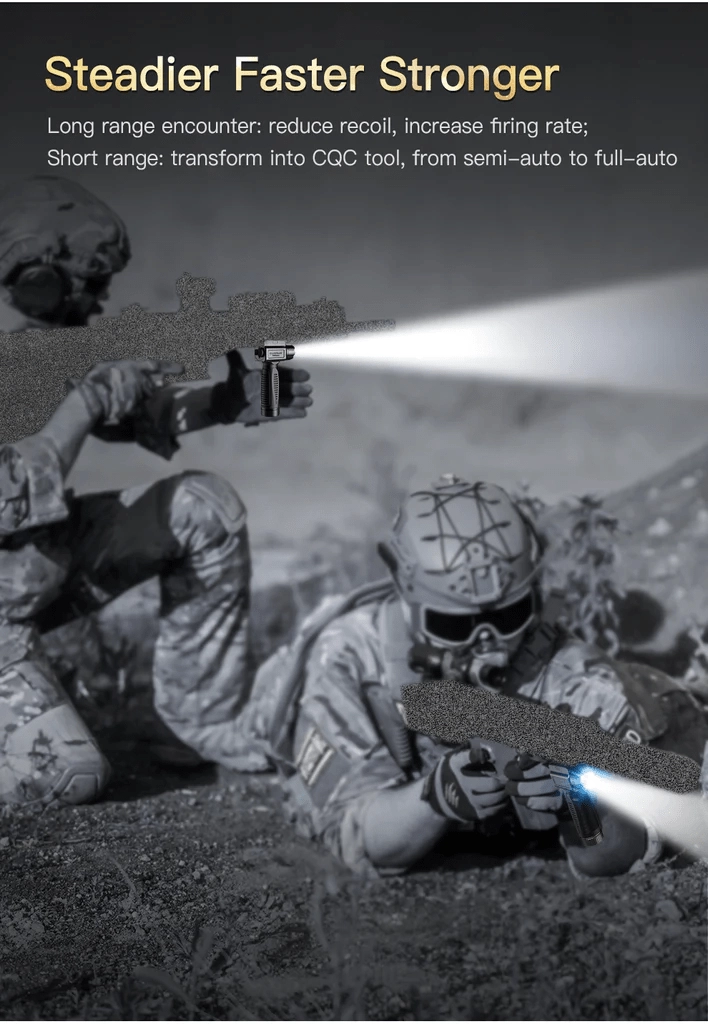 - Gyors rögzítés 1913 Picatinny sínre, gumírozott felület és stabil fogás