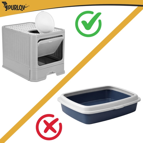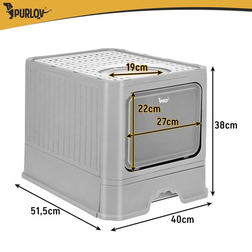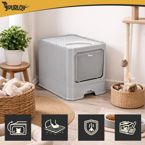 A Purlov fedett macskaalom modern és kényelmes megoldás a tiszta otthonért és kedvencének maximális magánszférájáért. A zárt kialakításnak, az okos elöl belépés / felül kilépés rendszernek és a kihúzható fióknak köszönhetően a takarítás gyors és rendetlenkedés nélküli. A csomag tartalmaz lapátot is, az alom pedig stílusos dizájnjával bármely enteriőrbe illik.