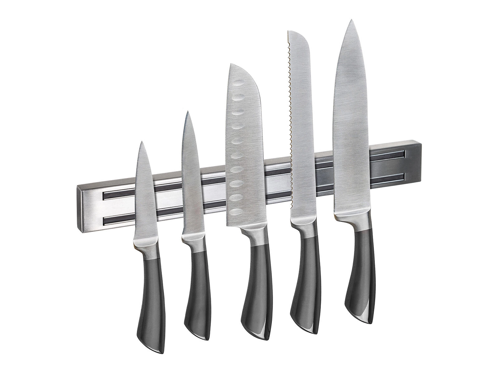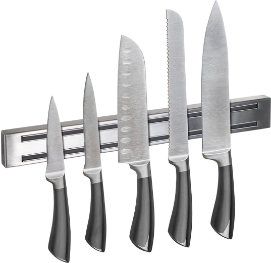 Két párhuzamos mágneses sín biztosítja a különböző méretű és súlyú kések szilárd és biztonságos rögzítését, hogy mindig gyorsan elérhetők legyenek.