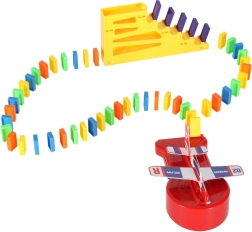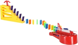Ez a kreatív gyerekszett időtálló dominószórakozást kombinál a repülőrajt izgalmával. Építsen pályát a kövekből, indítsa el a sort, és figyelje, ahogy a felboruló elemek energiája aktiválja a kilövő mechanizmusát – a repülő kilő és gondoskodik a nagy fináléról. Ideális önálló vagy csoportos játékhoz otthon és iskolában.