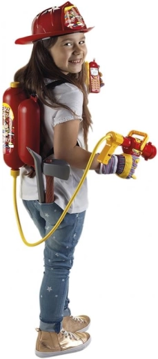 Ez a tűzoltó szett azoknak a kis hősöknek készült, akik imádják az akciót és a kalandot. A nagy víztartály a jellegzetes piros színben, sárga részletekkel a háton viselhető, és a tömlővel és pisztollyal lehetővé teszi a gyerekeknek, hogy „tüzet oltsanak” vízsugárral. A masszív kialakításnak és a minőségi műanyagnak köszönhetően a játék tartós, és felkészült az intenzív használatra.