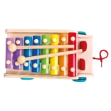 A gyermek zenei tehetségének fejlesztése színes xilofon és ütők használatával. A dallamalkotás játékká válik.