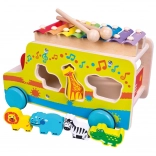 A Bino fa játék tökéletes társa minden gyermek számára. Ez a teherautó nemcsak húzható játékként szolgál, hanem szórakoztató zenei elemet is nyújt a xilofon a tetőn ütőkkel. A játék segíti a képességek fejlesztését, mint a színek és formák felismerése és támogatja a mozgáskoordinációt.