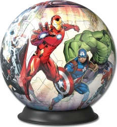 A Ravensburger 3D Puzzleball kiváló minőséget és szórakozást nyújt a szuperhősök kicsi és nagy rajongóinak. A pontosan ívelt elemeknek köszönhetően az összerakás egyszerű, stabil és ragasztómentes. A Marvel Avengers motívumú kész gömb látványos kiegészítője lesz bármelyik szobának.