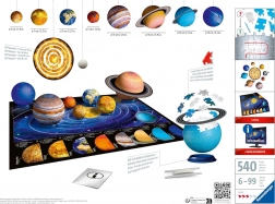 A RAVENSBURGER minőségi kivitelezésének köszönhetően az összerakás gördülékeny, szórakoztató és tanulságos. A kész bolygókat felakaszthatod vagy talpra állíthatod, így látványos űrmodellt hozhatsz létre otthon. A csomag része egy kétoldalas poszter információkkal (feliratok idegen nyelven) és képes útmutató a könnyű kezdéshez.