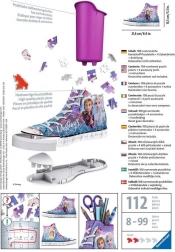 Zseniális ötvözete a szórakozásnak és a praktikumnak: 3D puzzle magas szárú tornacipő formában a Jégvarázs 2 kedvelt hősnőivel. Az erős műanyag elemeknek köszönhetően tartós dekorációt építesz, amely ceruzatartóként tollakhoz, színesekhez és ollóhoz is szolgál – ragasztó nélkül, könnyedén és tökéletes eredménnyel.