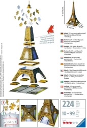 Élvezd a háromdimenziós puzzle összeállításának élményét az Eiffel-torony modellel. Speciálisan ívelt és rugalmas darabok, amelyek lehetővé teszik a precíz összekapcsolást ragasztás nélkül, biztosítva ezzel az ikonikus építmény kiváló stabilitását. A modell erős műanyagból készült, ami garantálja hosszú élettartamát.