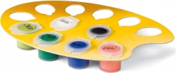 - Számozott előrajzzal ellátott vászon, akrilfesték-készlet, ecset, a festékes tégelyekhez karton állvány, keret