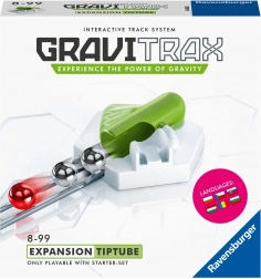 A GraviTrax TipTube bővítés csak a kezdő készlettel kompatibilis. A csomag tartalma: 1 akciótartály, 1 hosszú sín, 2 közepes sín és 3 rövid sín.