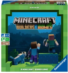 A Ravensburger MINECRAFT: Builders & Biomes a népszerű videojáték elemeit ülteti át az asztalodra. Járd be a játéktáblát, termelj fát, követ és egyéb nyersanyagokat, építs egyedi konstrukciókat, és szerezz pontokat okosan megválasztott stratégiákkal. Minden kör új döntéseket és esélyt hoz az ellenfelek túljárására.