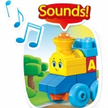 Fedezd fel a tanulás örömét a MEGA BLOKS betűs zenélő vonatával. A gyerekek összekapcsolhatják a három vagont, megrakhatják a színes betűs kockákkal, és a vonat építése közben játékosan tanulhatják az ábécét és az első szavakat. Az interaktív kémény szórakoztató vonathangokat és vidám dalt ad, amelyek fenntartják a figyelmet és serkentik az érzékelést.