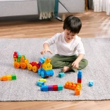 A betűs, színes kockák segítik a betűformák felismerését és az első szóalkotást. A gyerekek természetes módon fejlesztik szókincsüket és logikus gondolkodásukat.