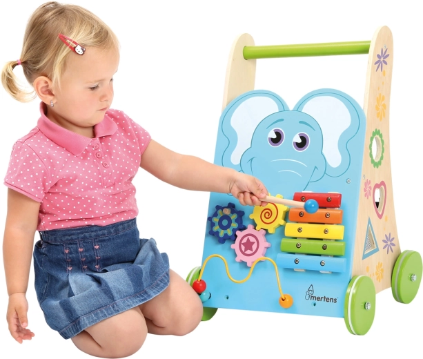 Ez a multifunkciós fa járássegítő segíti a gyermekeket az egyensúly, a koordináció és a finommotorika gyakorlásában. Az elülső panel tele van tevékenységekkel: hangszeres xilofon ütővel, fogaskerék-mechanika, gyöngy labirintus és formabedobó, amelyek támogatják a koncentrációt és a logikus gondolkodást.