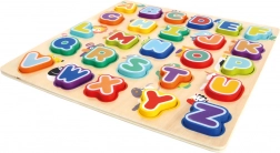 Szórakoztató fa kirakó angol ábécével, állatokkal és színes betűkkel, amely támogatja a tanulást és a finommotorikát. Minden betű alatt a gyerekek egy képet és az állat angol nevét találják, így kiváló segédeszköz az angol nyelv első lépéseihez. Betűgyakorlás, állatismeret és koordináció fejlesztése egyetlen strapabíró, rétegelt lemezből készült játékban.