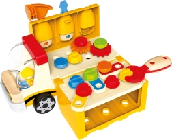 Masszív teherautó, amely a fát és a műanyagot ötvözi a hosszú élettartam és a könnyű kezelhetőség érdekében. A billenthető plató valósághű elemekkel gazdagítja a játékot.