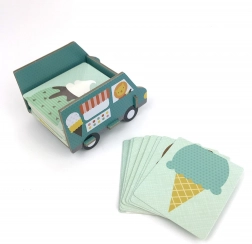 Édesszájúak, egyesüljetek! Okos és szórakoztató kártyajáték, amelyben fagyitölcséreket raksz össze, gombócokat gyűjtesz, és szórással díszítesz. Tartalmaz 52 illusztrált kártyát és 4 fagyis autót, ideális 2–4 játékos számára, körönként kb. 10 percig tart, és újrahasznosított anyagokból készül növényi alapú festékekkel. Remek választás 4–8 éves gyerekeknek, és megfelel minden biztonsági szabványnak.