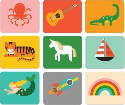 Színes és könnyen érthető képek állatokról, tárgyakról és járművekről, amelyek a kisebb játékosoknak is megkönnyítik a találgatást.