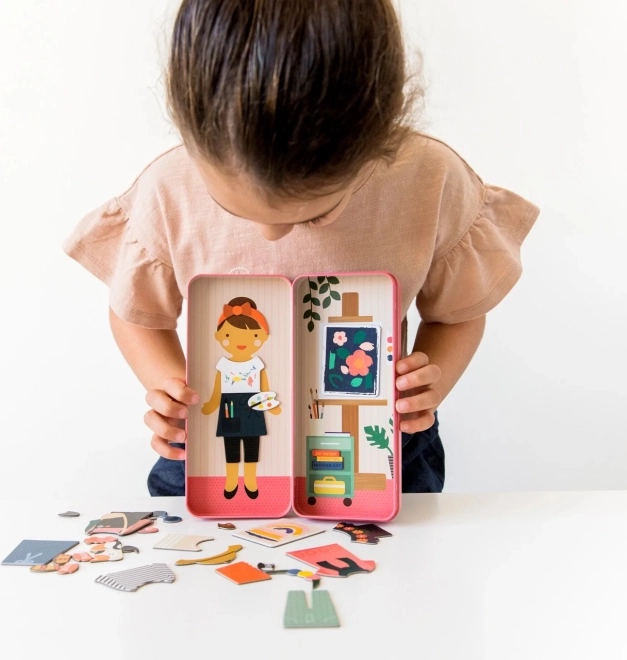 A Petit Collage márka mágnses öltözködése tökéletes választás kis művészek számára 3 éves kortól. Inspirációra és kreativitásra tervezve, ez a játék a következőket kínálja: