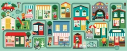 Labirintus és Puzzle Város egy szórakoztató játék 2 éves kortól, amely pázsitos rejtvényt ötvöz az interaktív keresős játékkal. A gyerekek egy színes városba merülhetnek, tele meglepetésekkel.