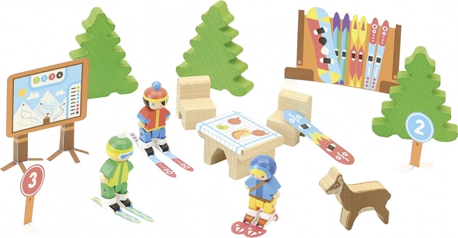 Ez a Jeujura fából készült építőkészlet ideális a gyerekek számára, akik szeretik az építést és a kreativitásuk kibontakoztatását. A gyerekek különféle építményeket hozhatnak létre 120 precízen elkészített darabbal. Az építőkészlet nemcsak a síközpont építéséhez szükséges elemeket, hanem egy alapot is tartalmaz a környezet szimulálásához.