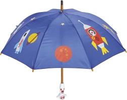 Fedezd fel az esős napok varázsát a VILAC Űrhajós gyerek esernyővel. A színes űrminta bolygókkal és rakétákkal szórakoztatóvá teszi az utat az óvodába vagy az iskolába, míg a masszív szerkezet megbízható védelmet nyújt az eső ellen. Az ergonomikus fa fogantyú jól kézre áll, és biztos fogást ad a gyerekeknek.