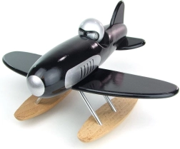 Ez a gyönyörű hidroplán a Vilac márkától magas minőségű, fekete lakkozott fából készült, nagy figyelmet fordítva a részletekre. Kiemelkedik stílusos retro dizájnjával, fém díszítésekkel és fa úszóival, amely nemcsak játék, hanem dekoratív elem is a gyerekszobába.