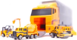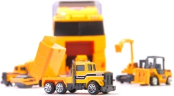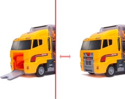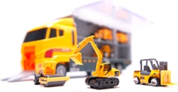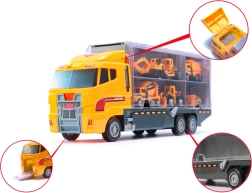 Ez a 2 az 1-ben szállító és játékszett ötvözi a szórakozást a praktikummal. Az átlátszó oldalfalú vontató hat, részletgazdagon kidolgozott építőjárművet fogad be, és egyben kompakt rendszerezőként is szolgál. A gyerekek élethű építkezős játékot élhetnek át a mozgó elemeknek és az okos, gombnyomásra lenyíló rámpának köszönhetően.