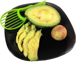 A műanyag penge simán kettévágja az avokádót anélkül, hogy megsértené a húsát. Az ergonomikus forma biztos fogást és precíz vágásokat nyújt.