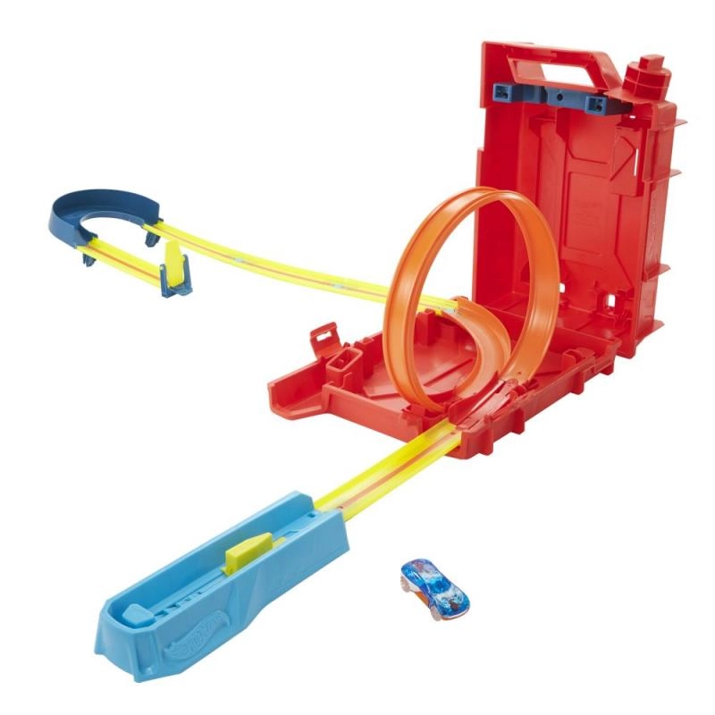 Minden, amire a gyerekeknek szükségük van saját pályáik és kaszkadőr trükkjeik megalkotásához, egy praktikus kannás hordtáskában rejtve. Építs, alakíts át és mutasd be a hurkokat és ugrásokat egyenes és ívelt elemek segítségével. A tárolódoboz egyben a pálya része is, és a csomagban 1 HOT WHEELS kisautó is található, így a szórakozás azonnal kezdődhet.