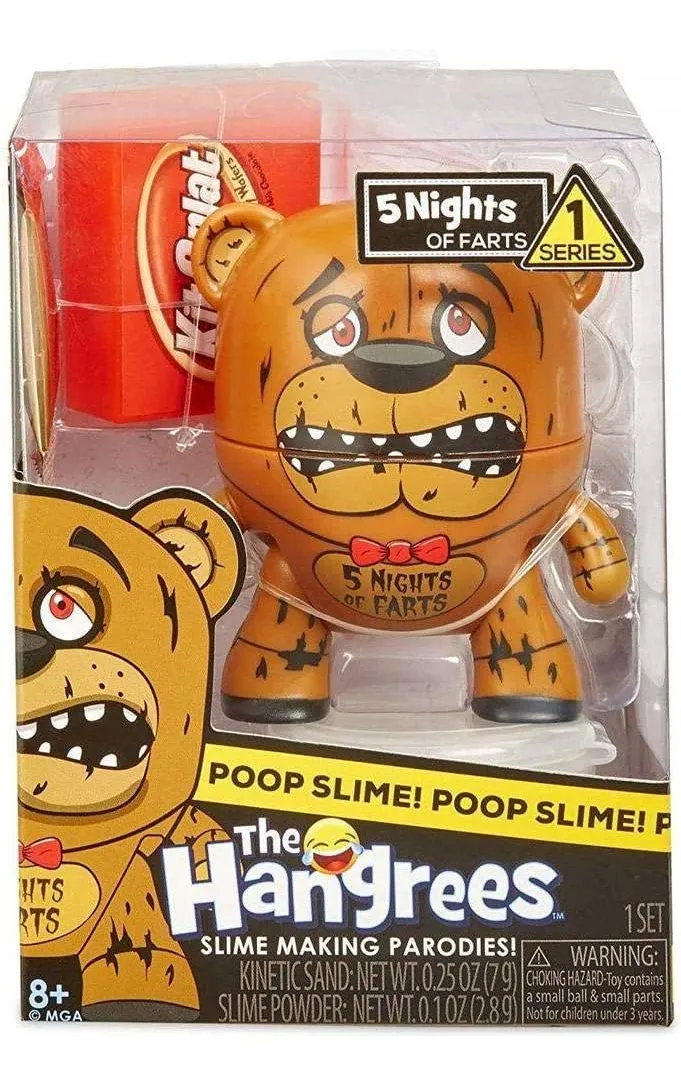 Az 1. szériás Hangrees Falfaló eredeti humort és kreatív játékot hoz. A gyerek megeteti a figurát, felrázza, és pillanatok alatt slim keletkezik, amelyet biztonságosan el lehet helyezni a mellékelt mini vécébe. A mókás kiegészítők és a közismert márkákra tett utalások egyedi stílust kölcsönöznek a játéknak.
