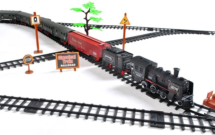 Fából készült vonatpálya 3,2 m – nagy készlet, 57 darab daruval