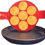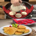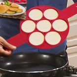 Ez a multifunkciós, élelmiszeripari szilikonból készült forma megkönnyíti a reggelik és a gyors vacsorák elkészítését. Egyszerűen helyezze a serpenyőre, töltse meg a nyílásokat tésztával, majd sütés után az oldalsó fogantyúk segítségével fordítsa meg – így egyenletesen átsült, tökéletes formájú falatokat kap kiömlés nélkül.
