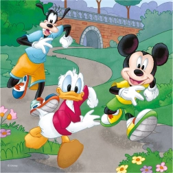 Fedezd fel a kirakózás varázsát a DISNEY kedvelt figuráival. A három, egyenként 55 darabos puzzle szett sportos kalandokat hoz MICKEY-vel, MINNIE-vel és barátaikkal – futás, kosárlabda és biciklizés. A gyerekek a kirakás során gyakorolják a türelmet, a logikus gondolkodást és a szem–kéz koordinációt.