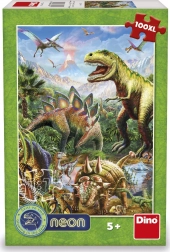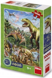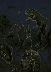 Fedezze fel a dinoszauruszok világát ezzel a csodálatos neon puzzle-val! Gyermeke élvezheti a szórakoztató kirakást neon elemekkel, amelyek a sötétben világítanak, és megjelenítik a dinoszauruszok körvonalait drámai hegyvonulat mellett.