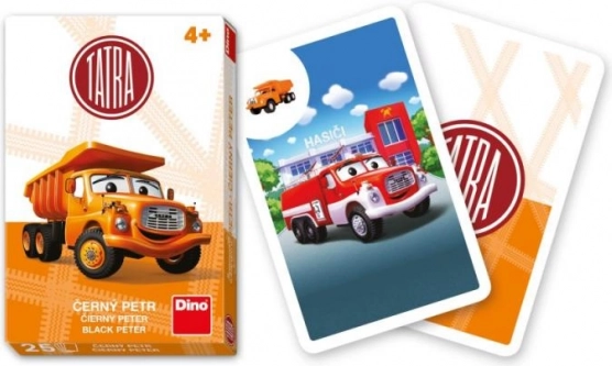 A Fekete Péter kártyajáték kedvelt Tatra autós képekkel ideális 4 éves kortól, hosszú órákon át tartó szórakozást és memóriafejlesztést biztosítva.