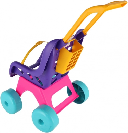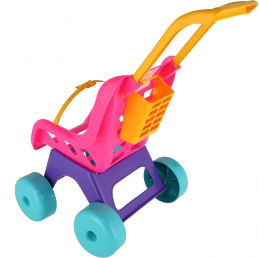 Ültesd be a babát, csatold be, és irány a séta! A Teddies Buggy Sport babakocsi rózsaszín–lila színösszeállításban támogatja a képzeletet és a mozgásfejlődést a mindennapi játék során. A strapabíró műanyag bírja a beltéri és kültéri használatot, a nagy kerekek pedig stabil és egyenletes gurulást biztosítanak.